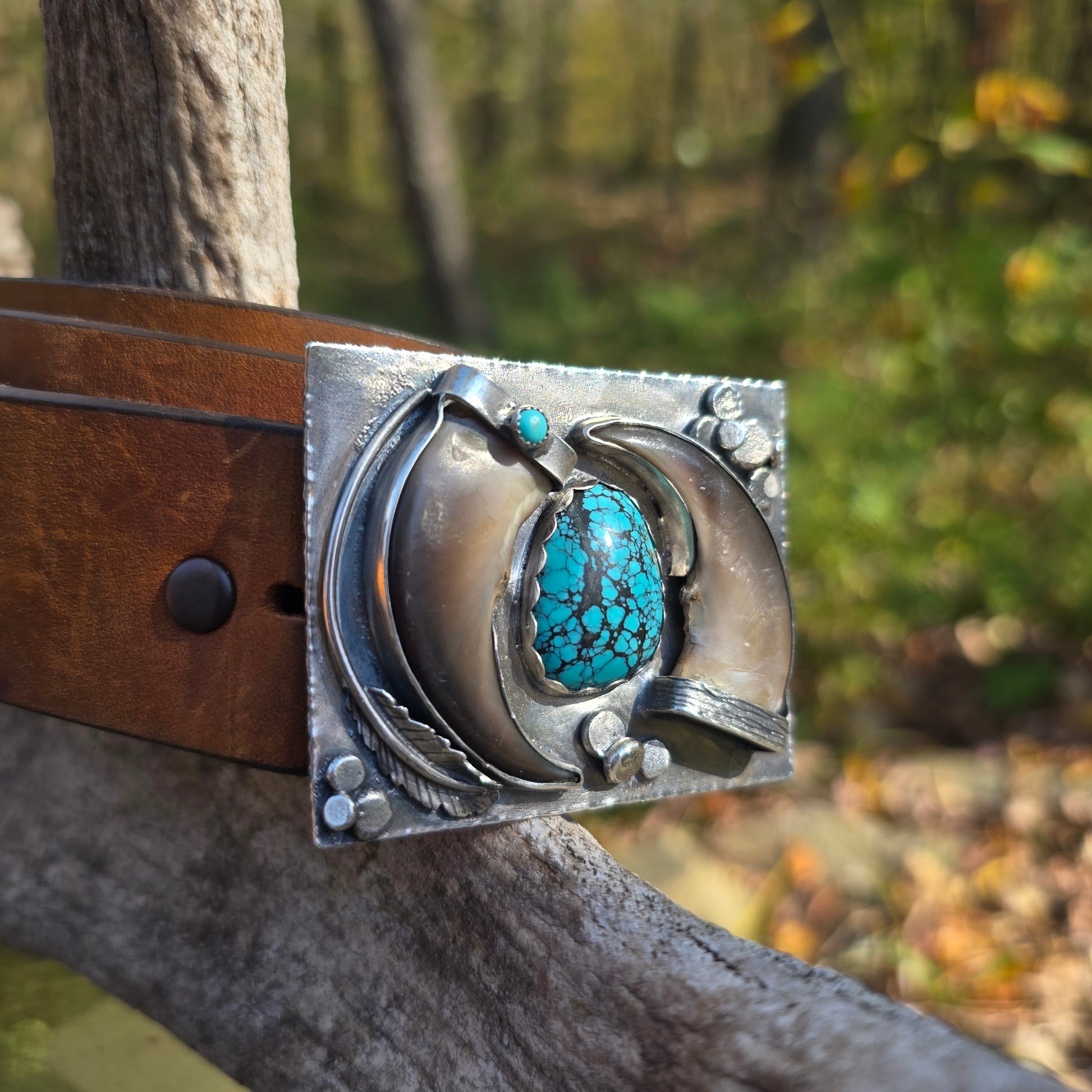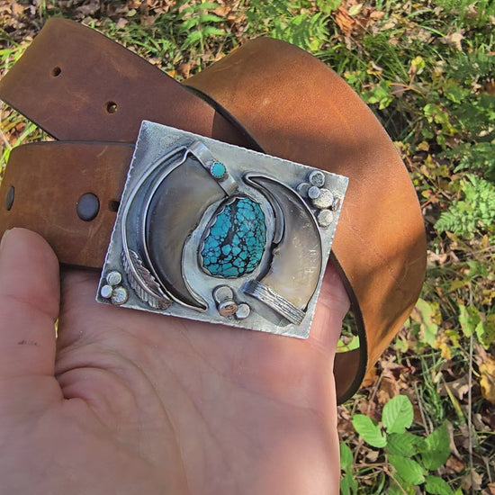 Black Bear Claw & Turquoise Belt Buckle – One-of-a-Kind, Handcrafted
