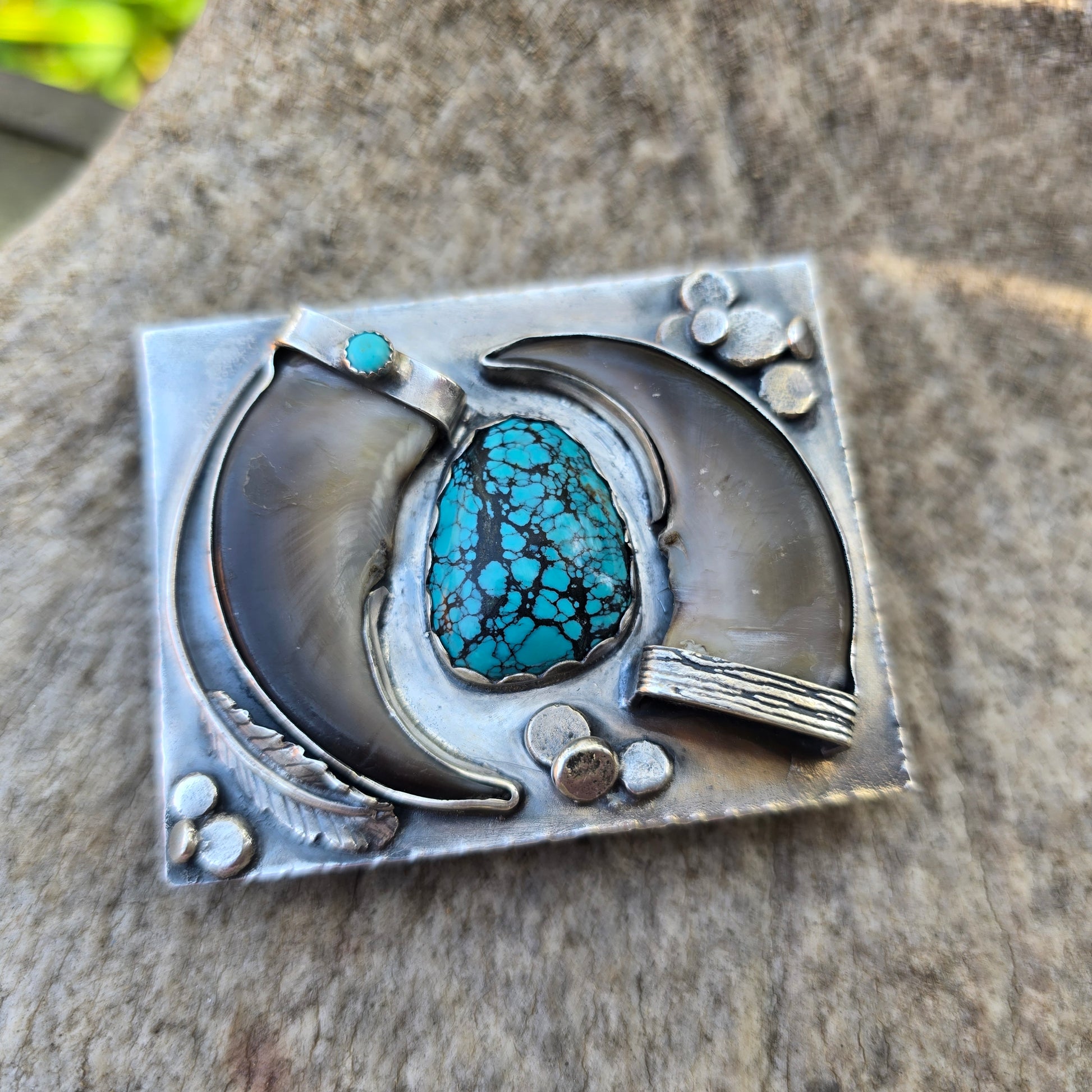 - Materials: Black bear claws, turquoise, sterling silver