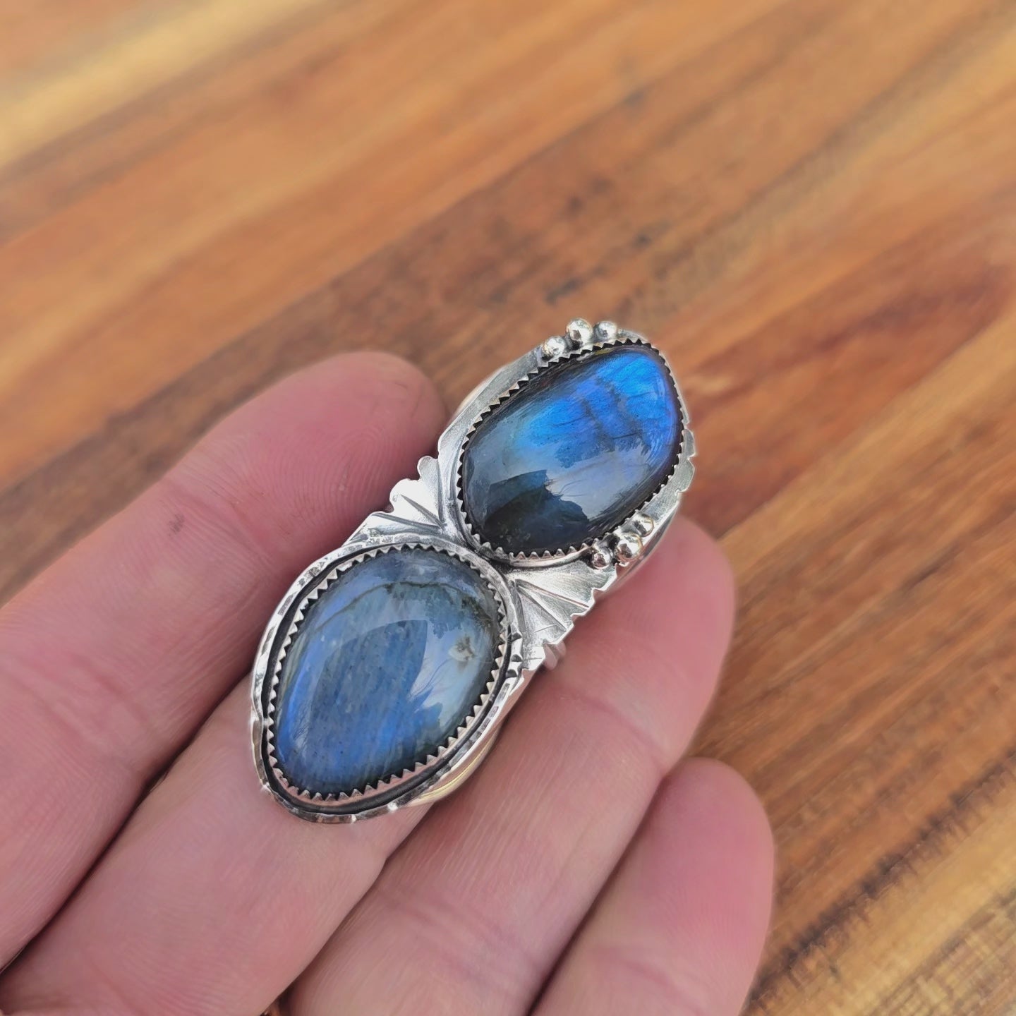 One-of-a-Kind Double Labradorite Statement Ring in Sterling Silver
