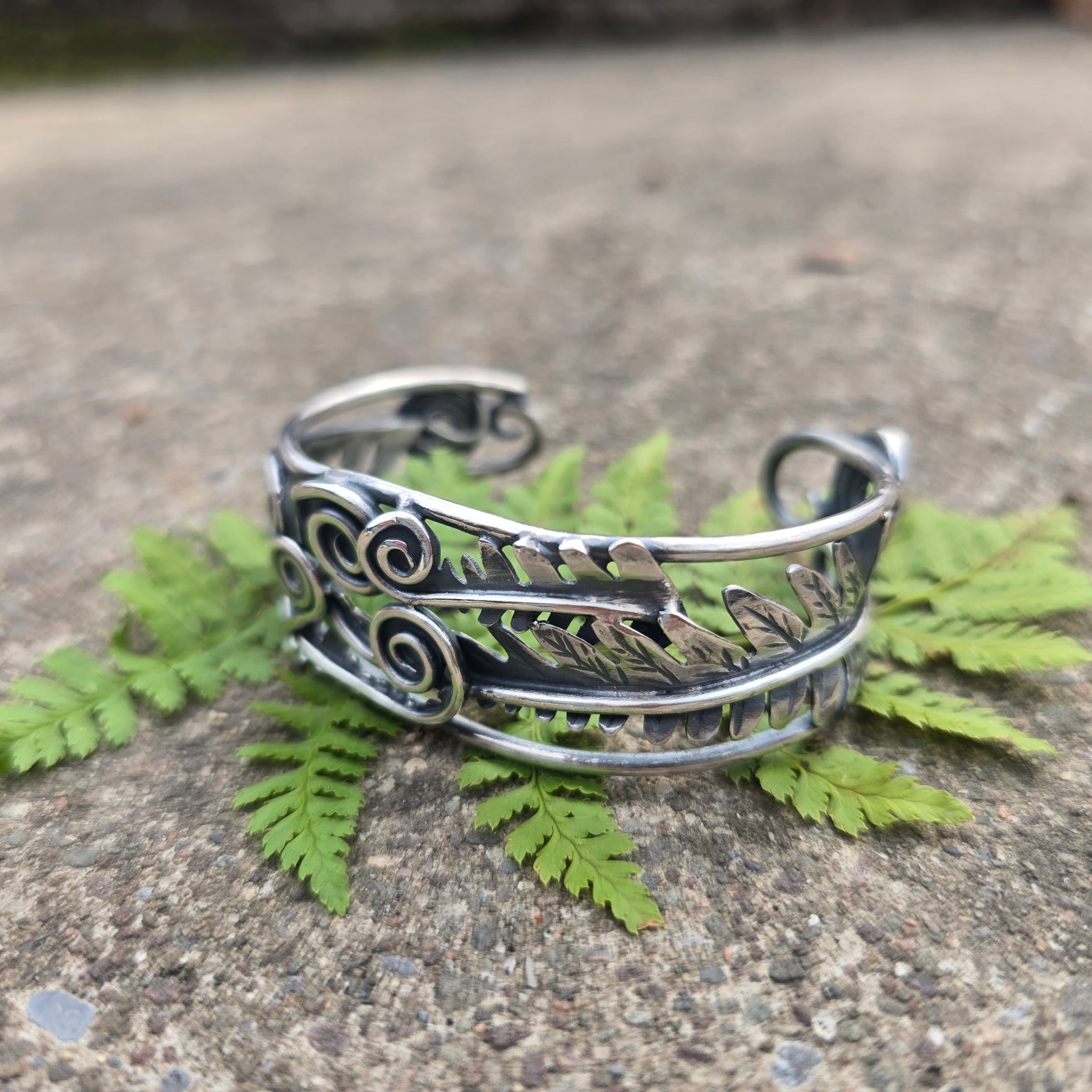These fern frond inspired cuff bracelets are each built individually. The flow of each bracelet will be similar but the details will vary.