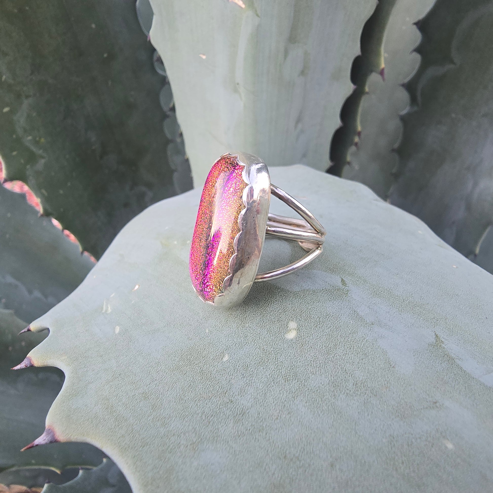 Pink & Orange Dichroic Triple Shank Ring (One of a Kind) — Size 5