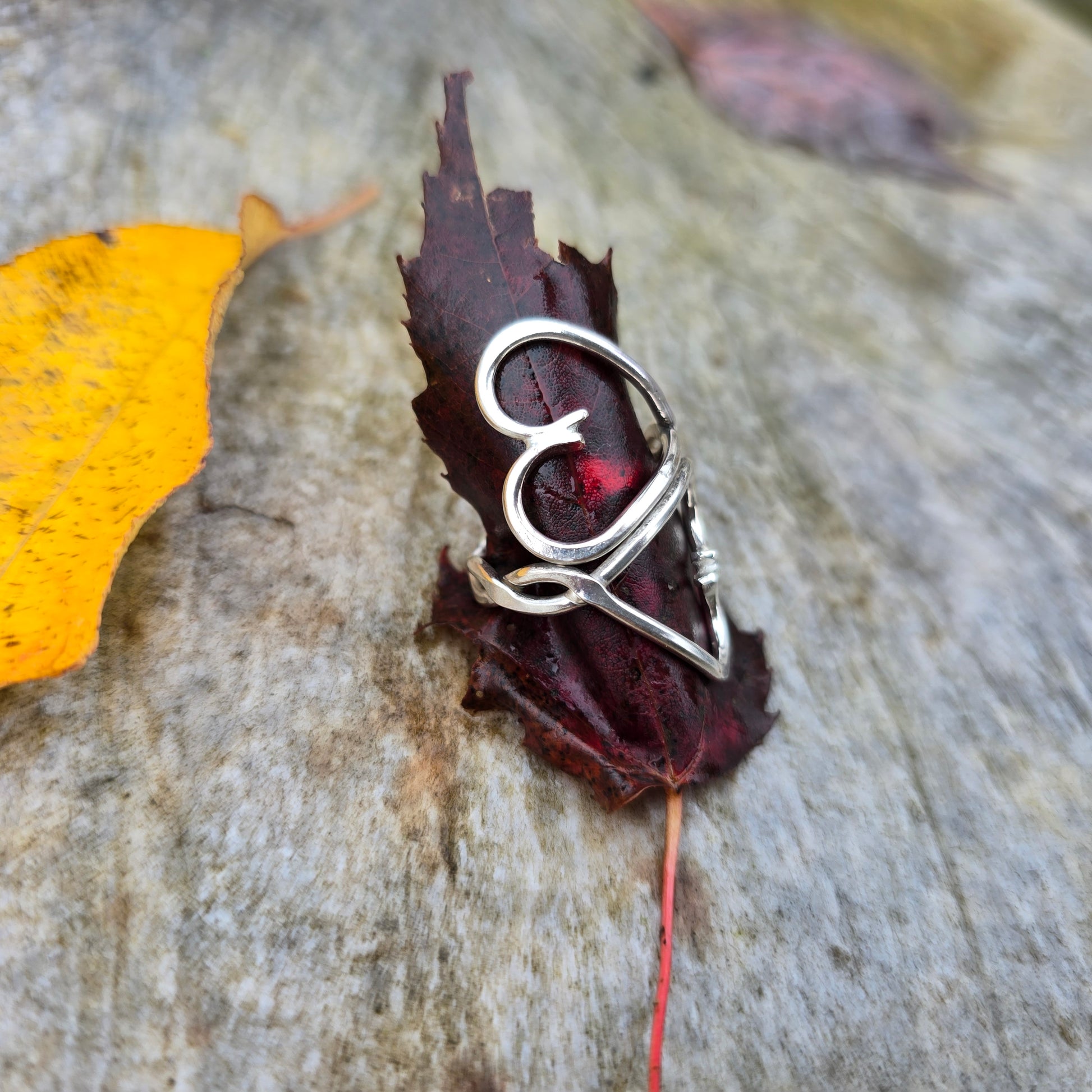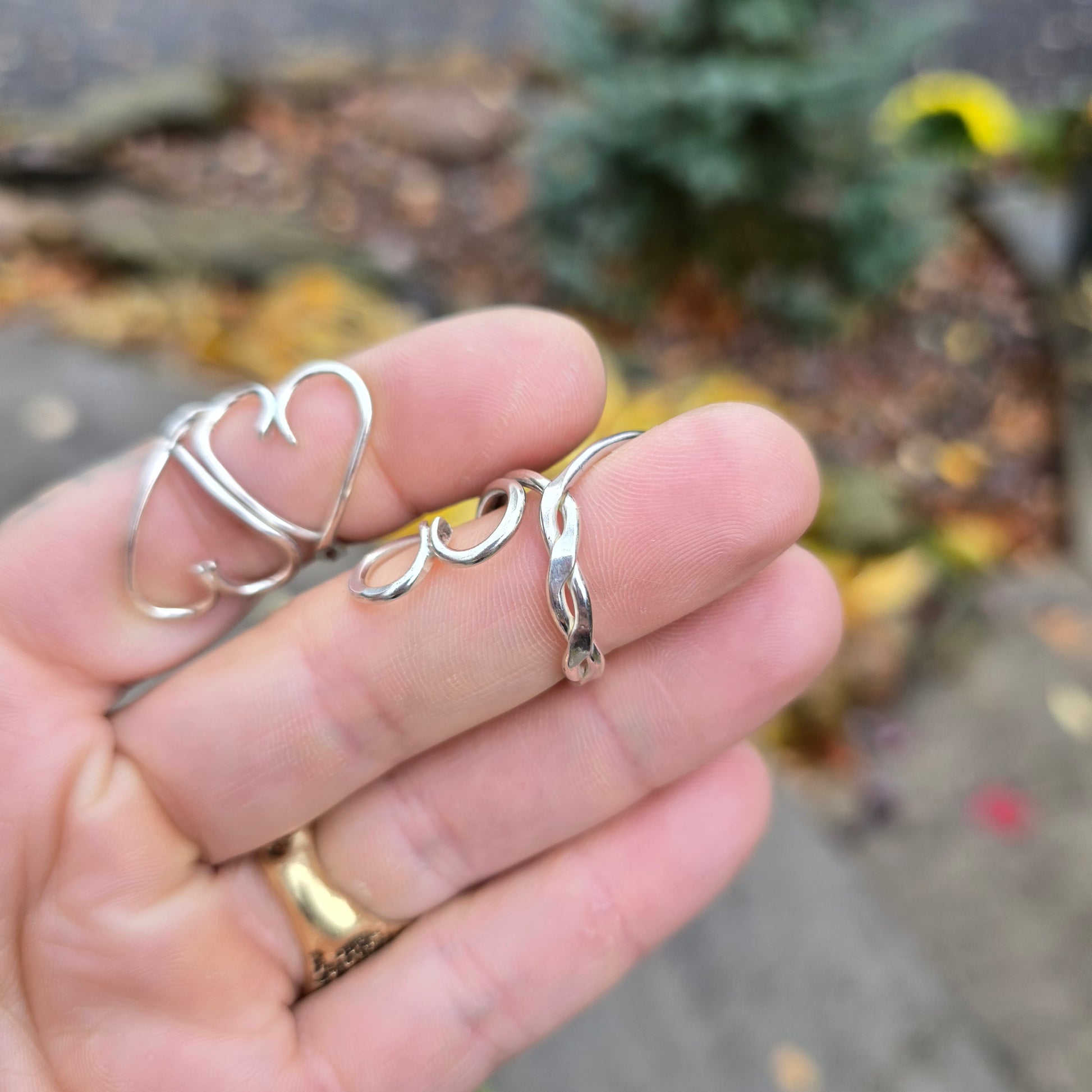 This ring features two heart forms twisted together and forged in sterling silver. Each piece is built individually, with the hearts formed as a continuous, unified structure. Surface variation reflects hand-forged construction while maintaining a controlled profile. The form is solid, balanced, and consistent across the band.